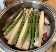 Ainsi, l'asperge cuit uniquement avec son eau de constitution, sans perdre ses précieux minéraux et vitamines hydrosolubles (solubles dans l'eau !).